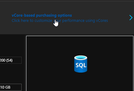 Above your cost summary, you can select the vCore based purchasing options. There are other options as well, but those are more expensive (or you can choose basic, but that’s just not how we roll, right? 😉