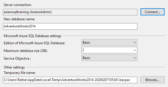Now that the database has been deployed to azure, you can reach it and use it. But check out the settings!