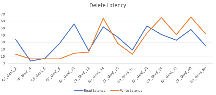 The read and write latency varied between 2 and 53 ms, averaging at 34ms read and 4.7ms write latency. It really varies and has hardly a relation with cores. Depending on your workload, this can be either something do dive deep into or to keep in the back of your mind.