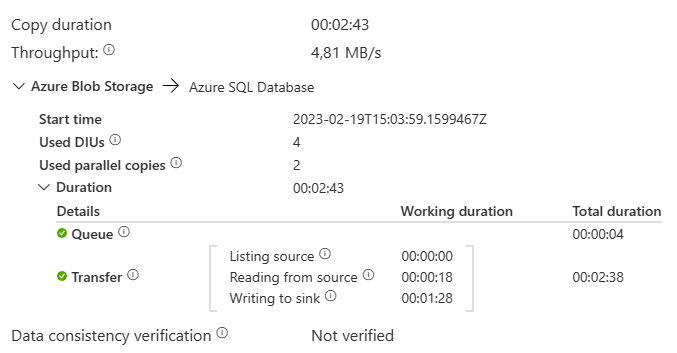 I’ve marked the two that are most important in my opinion. The copy duration went up with 8 seconds. More importantly, the process needed 30 seconds more to write to the sink.