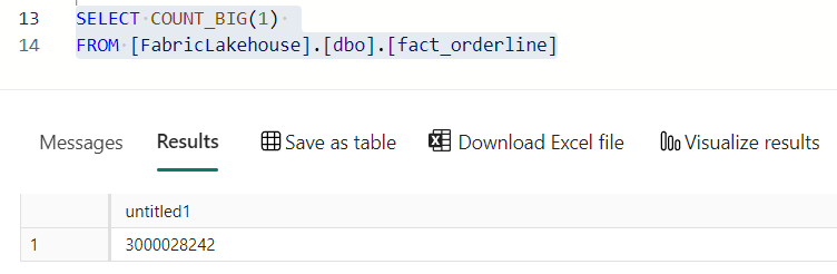 I’ll be honest, maybe counting from the dataframe is slower because it has to redo all the joins, and maybe doing the count warmed up the data for the SQL Query. But counting this amount of rows, 3.000.028.242, is no small feat. Weirdly, it’s only half of what the Spark feedback told me that was written out.