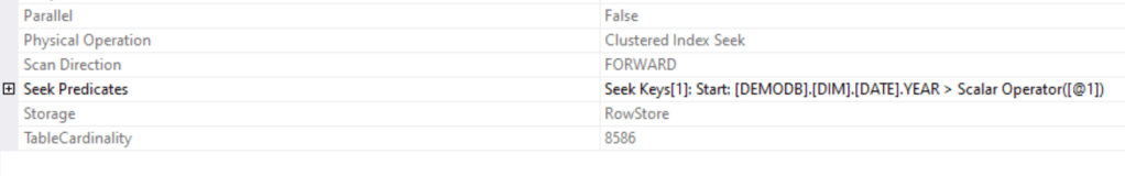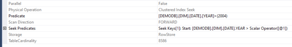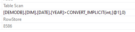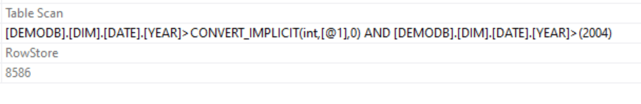 Seek Keys[1]: Start: [DEMODB].[DIM].[DATE].YEAR > Scalar Operator((2010))