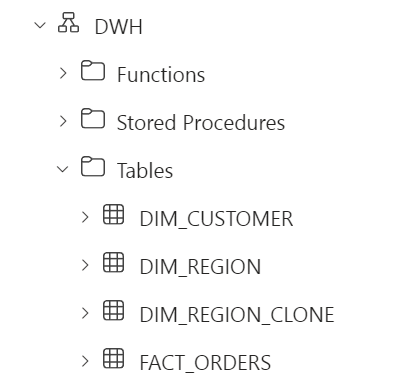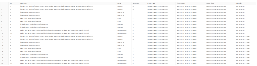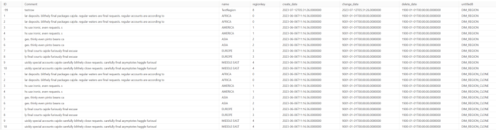 As you might be able to see (I’m guessing reading this on a phone won’t help you), the extra row got added to the DIM_REGION table but not the Clone. So yeah, the data in my clone was saved from my rogue update. But, where does this data live? Can I find the table in my OneLake explorer?