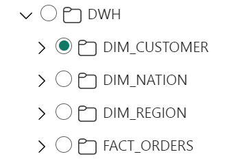 Right here, I’ve got an overview of my schemas and my tables. As I want to use my dimension tables in my LakeHouse, I’m going to select them.