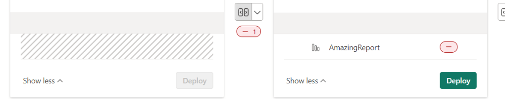As you can see, at the left of my AmazingReport, there’s a checkbox. Click it and the report will be deployed. Leave everything unchecked and all the artefacts will be deployed. So you can easily deploy them all or make a selection.