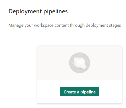 Besides creating new workspaces, you can create a deployment pipeline. Remember that this is something different that a copy data pipeline.