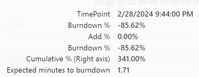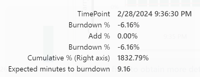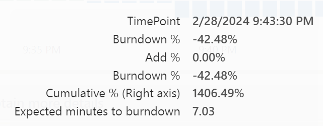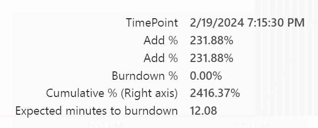 In this case, the burst went from 19:10 until 20:14. The burn down from 20:14 until 23:16. Again, you can see that there’s a number of three at play. I can triple my capacity temporarily, but the burn down (or repayment of my overused capacity) won’t go at that rate. Which is as expected.