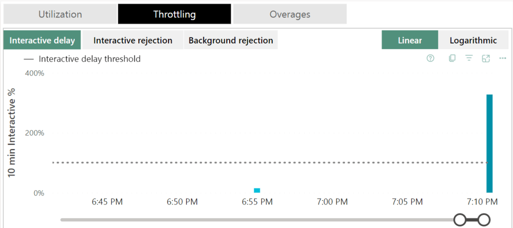 I have gone WAY over the CU limit for this one. Getting close to the 400% mark. When you look at the docs, bursting allows you to, temporarily, use thrice the amount of CU’s you’ve provisioned with the F SKU. One could argue I even went over that part. Let’s see what the other graphs show.