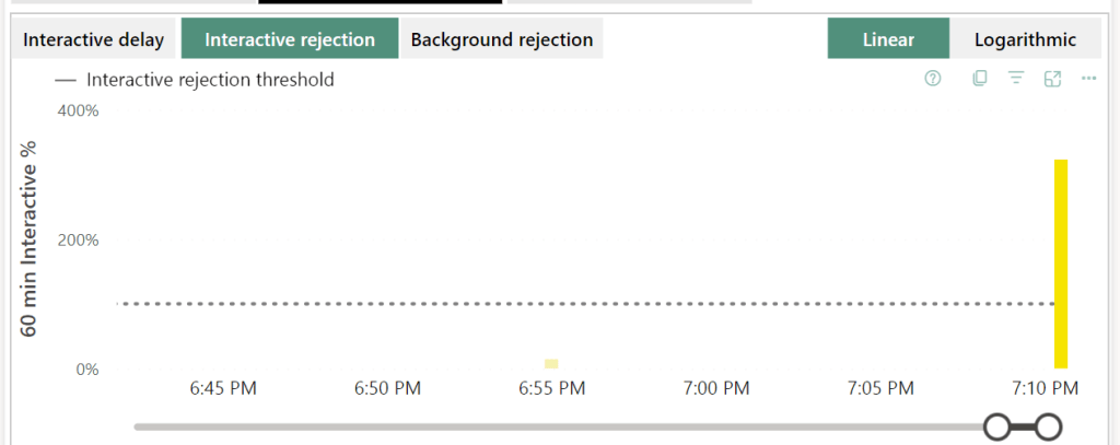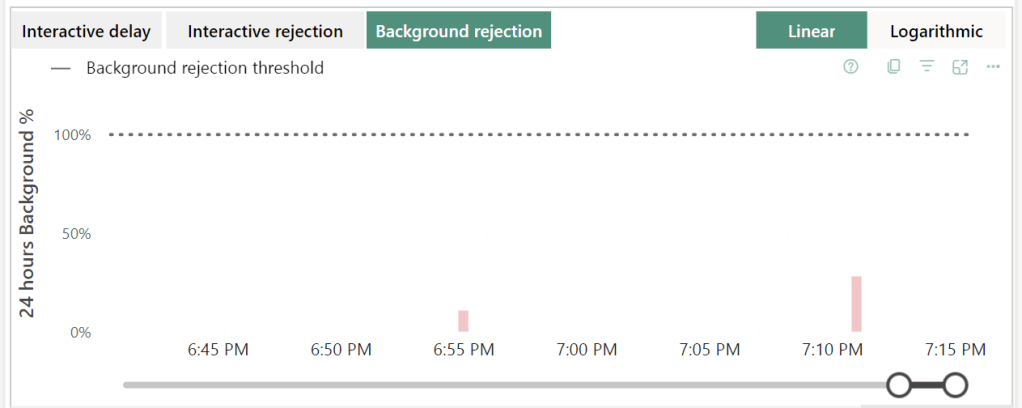 Not much background rejection. Why? Well, the report is interactive. That’s where the pain lies. So it’s not too weird that this one is within bounds. If I were to run a pipeline or notebook, those are background processes and these would show up quite quickly I think. Not tested for this blog though.
