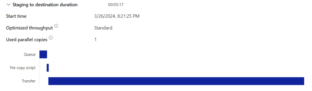 There’s some time to read from the source, a lot of time transferring data and then writing to sink (or destination as it’s now called).