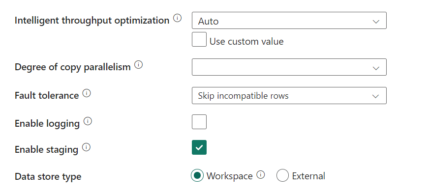 I’m skipping incompatible rows as I’ve seen that my CSV files aren’t all that healthy. One more reason to dislike flat files as a source but that’s beside the point of this blog. Something else is the checkmark at Enable staging. Because I’ve written in my Dataflow Gen2 blog that I don’t really like that part. But when I switch it off, this happens: