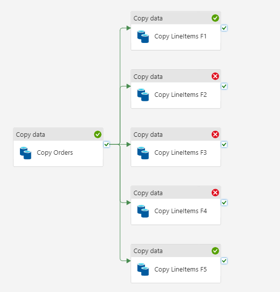 It probably won’t surprise you that the pipeline failed again. But less destructive this time, a few Copy data flows finished but most failed.