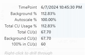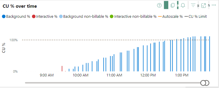 The fact that you’re seeing a duplicate registration is something that has been mentioned to the program team; most likely something happening in the communication between the front end and the back end. In any case, the pipeline failed after an hour and three minutes but the capacity smoothed out the work over 24 hours. With the added effect that after 1 hour, the capacity reported an error.