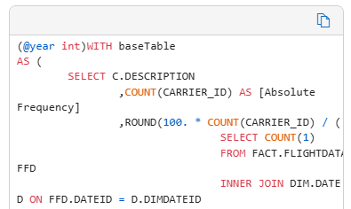 I’ve been testing Copilot in my own Azure tenant with a database that has a normalised model and a data warehouse datamodel. The database is around 90 GB on my local machine and has been transferred ‘as is’ to the Azure Sql DB. The database has a lot of flight information from 2000 to 2008, all about registered flights within the USA.