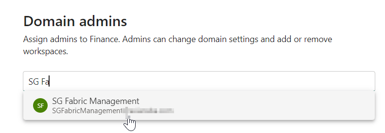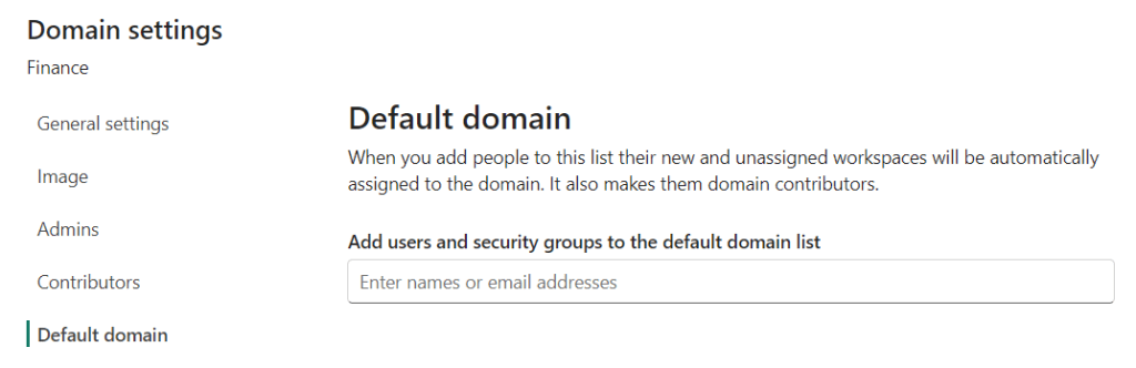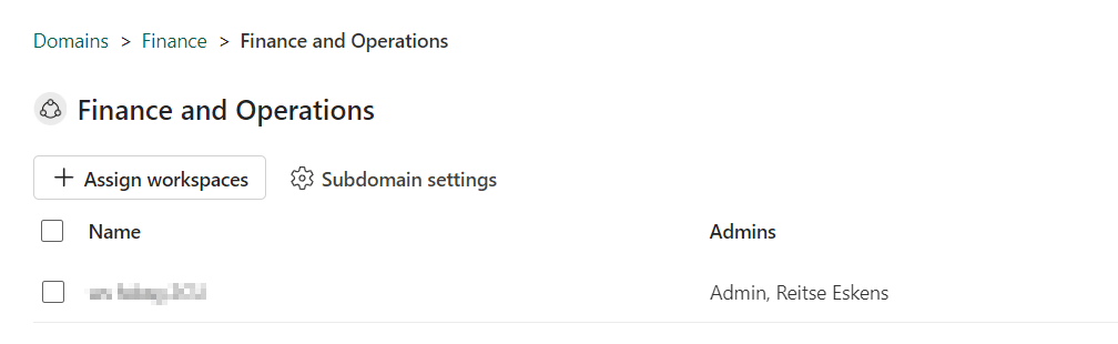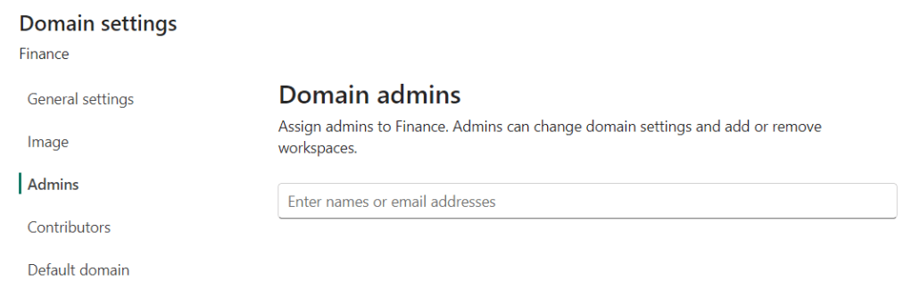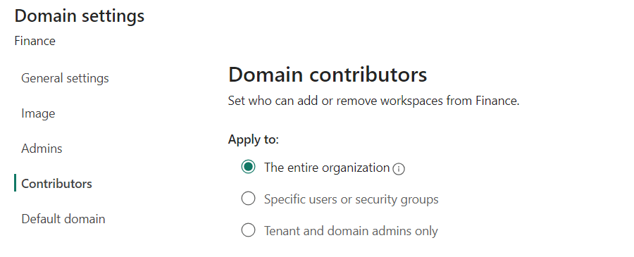 The domain contributor are workspace administrators who are able to assign a domain to a workspace. They can also change the domain a specific workspace has been assigned to. They can’t see the domains tab in de admin portal.
