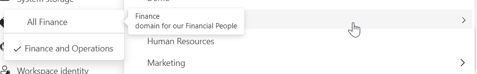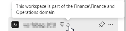 Click on the name and done. The workspace has now been assigned to the Finance and operations domain. When you look at the name in the list of workspaces, you can see it as well as it has an extra icon next to it.