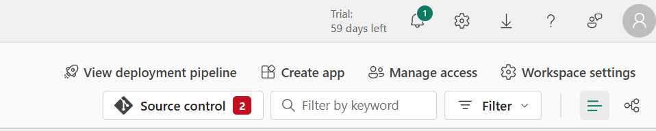 When you’re logged into Fabric and you’ve selected a workspace, you’ll find the following icons in the top right corner.