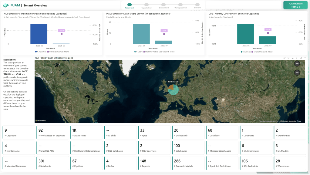 FUAM, short for Fabric Unified Admin Monitoring, does the same thing. It automates the entire process and provides an extensive report for your review. You can dig deeper into things that interest you. The biggest win is that you don’t have to think about all the different tools to get the information. It’s all done for you.