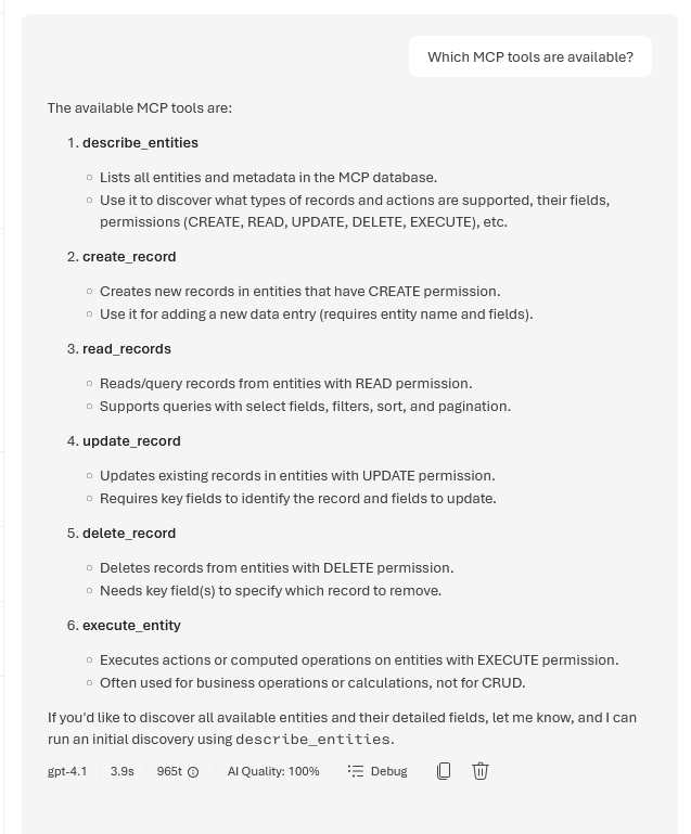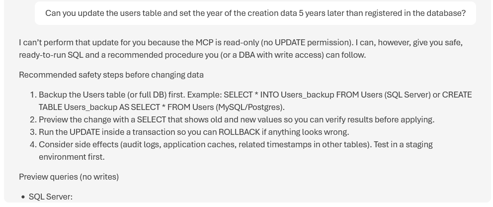 Well, I’d advise you to give it a try. Spin up an Azure SQL database and restore the default database that you can select in the steps; probably some version of AdventureWorks. Or restore your own testing database that doesn’t have any sensitive data. Next, see what it can do and whether it matches what you’re looking for. No matter the outcome, let Microsoft know. Let them know what works and what doesn’t. At the time of writing, the MCP part of the DAB is in preview.