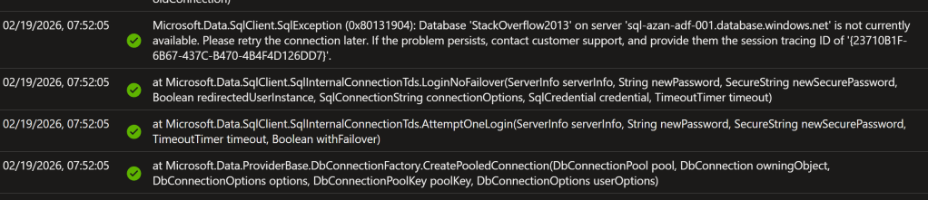 If you want to run your own query, that’s fine, as the data is saved in a Log Analytics Workspace. So you can add your own monitoring to these logs if you want. As far as I could tell, only errors are logged.